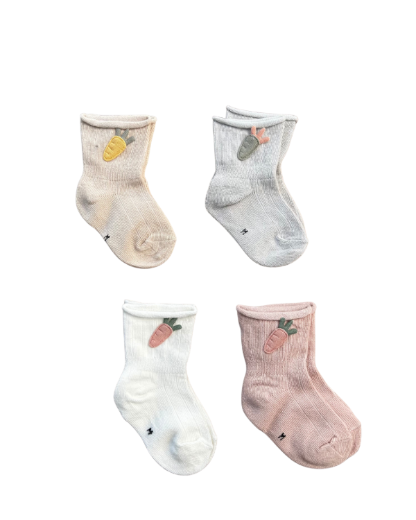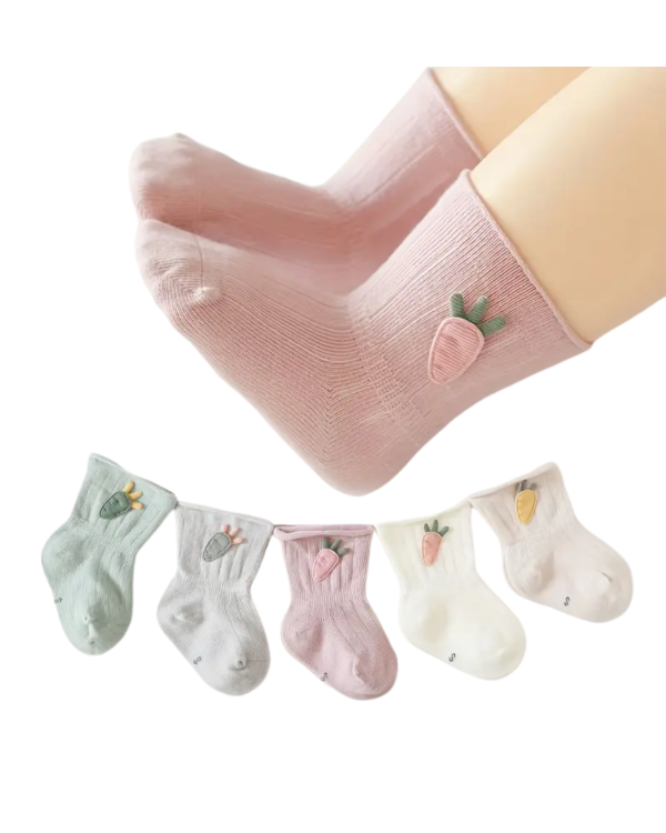 Medias de talle único (Talle M de 9 a 18 meses) ideal para usar en pies de 10-12 cm. pero al ser elásticas, pueden adaptarse tranquilamente a piecitos más pequeños o un poquito más grandes.